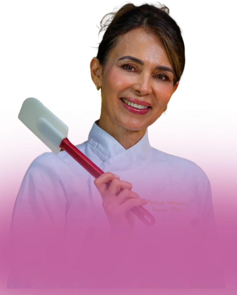 Soy Angélica Velasco, madre, esposa y pastelera con más de 10 años de experiencia. Me formé en la Escuela de Cocina Mariano Moreno y complementé mi conocimiento con cursos online y experiencia empírica. Dejé mi trabajo de 20 años para dedicarme a mi pasión por la pastelería, lo que me ha permitido crear un negocio próspero y una comunidad leal. Hoy, enseño a otras mujeres a transformar sus vidas, vivir de lo que aman y disfrutar de su tiempo mientras perfeccionan sus habilidades en la decoración de tortas.