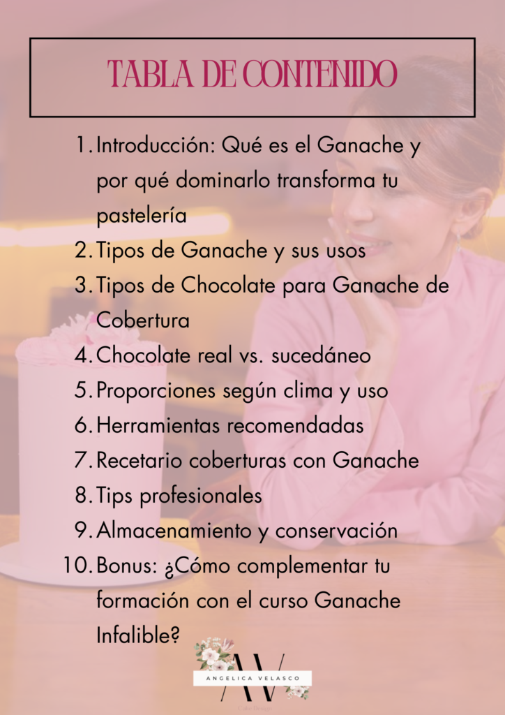 En este ebook vas a encontrar todo lo que necesitas para dominar el ganache, desde lo más esencial hasta técnicas avanzadas que transformarán tus tortas en piezas profesionales: